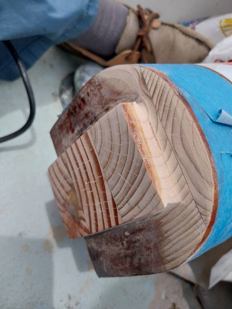 Ripartendo, ci siamo infine decisi a portare al cantiere il bompresso che, benché verniciato con cinque mani di epossidica e due di vernice per legno, doveva ancora superare il test dell'incastro nel suo alloggio a prua. Naturalmente, sarà da ritoccare: molto bello esteticamente parlando, non è stato tagliato come doveva, quindi Mario a cominciato a modificarlo, mentre io ho ripreso i miei obló, approfittando del fatto che non dovesse piovere.
